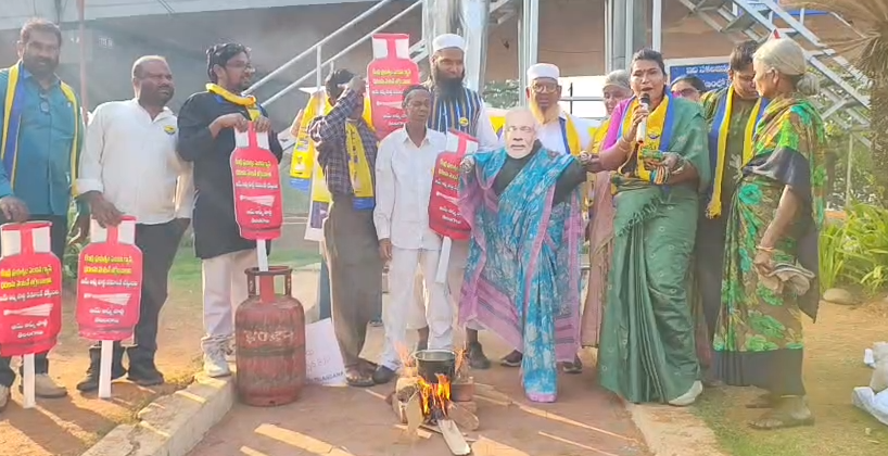 TG:గ్యాస్ ధరల పెంపుపై AAP వినూత్న నిరసన..