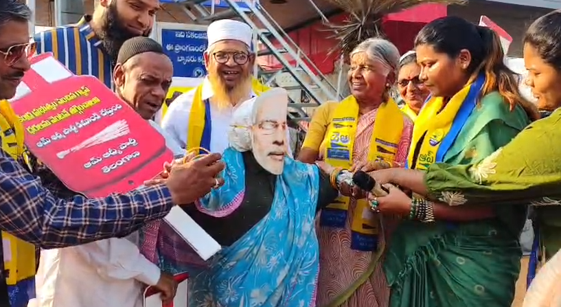 ఈ సందర్భంగా ఆప్ నాయకులు మాట్లాడుతూ గ్యాస్ ధరలను పెంచి కేంద్ర ప్రభుత్వం మధ్యతరగతి కుటుంబాలపై అదనపు భారం మోపిందని విమర్శించారు. పెరిగిన ధరల వల్ల సామాన్య ప్రజలు తీవ్ర ఇబ్బందులు పడుతున్నారని ఆవేదన వ్యక్తం చేశారు.తదుపరి ప్రధాని Narendra Modi దిష్టిబొమ్మకు చీర కట్టి గాజులు తొడిగిస్తూ నిరసన తెలిపారు. వెంటనే వంట గ్యాస్ ధరలను తగ్గించాలని కేంద్ర ప్రభుత్వాన్ని డిమాండ్ చేశారు.
