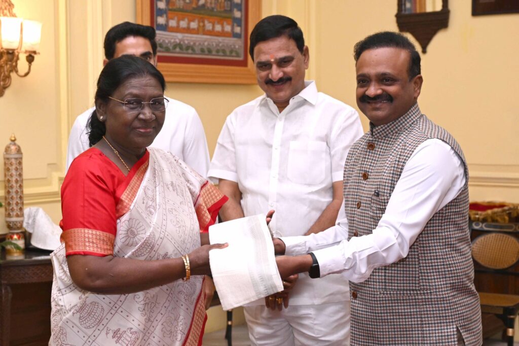 రాష్ట్రపతి భవన్లో లోకేష్, ఎన్డీఏ ఎంపీలు కలిసి రాష్ట్రపతిని కలిసి కృతజ్ఞతలు తెలిపారు. ఐదుకోట్ల ఆంధ్రుల ఆకాంక్ష అయిన అమరావతికి శాశ్వతత కల్పించడంపై రాష్ట్రపతికి ధన్యవాదాలు తెలియజేశారు.