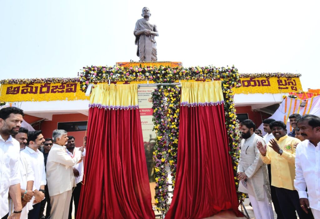 అమరజీవి పొట్టి శ్రీరాములు 125వ జయంతి సందర్భంగా అమరావతిలో 58 అడుగుల కాంస్య విగ్రహాన్ని N. Chandrababu Naidu ఆవిష్కరించారు. ప్రత్యేక ఆంధ్ర రాష్ట్రం కోసం ఆయన చేసిన 58 రోజుల ఆమరణ నిరాహార దీక్షకు గుర్తుగా ఈ విగ్రహాన్ని నిర్మించారు.