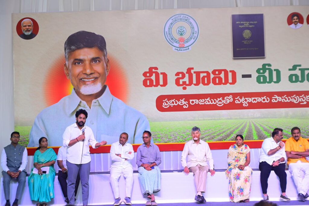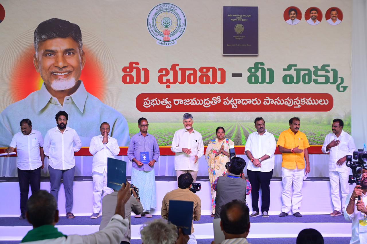 DR B.R.అంబేద్కర్ కోనసీమ జిల్లా మండపేట నియోజకవర్గం రాయవరం గ్రామంలో నిర్వహించిన ‘మీ భూమి – మీ హక్కు’ కార్యక్రమంలో ముఖ్యమంత్రి నారా చంద్రబాబు నాయుడు పాల్గొన్నారు. ఈ సందర్భంగా భూ యజమానులకు క్యూఆర్ కోడ్ (QR Code) తో కూడిన ఆధునిక పట్టాదారు పాస్ పుస్తకాలను ఆయన పంపిణీ చేశారు. గత ప్రభుత్వ హయాంలో భూ రికార్డుల్లో జరిగిన అవకతవకలను సరిదిద్ది, రైతులకు శాశ్వత భూ హక్కు కల్పించడమే ఈ కార్యక్రమ ప్రధాన ఉద్దేశమని సీఎం పేర్కొన్నారు.