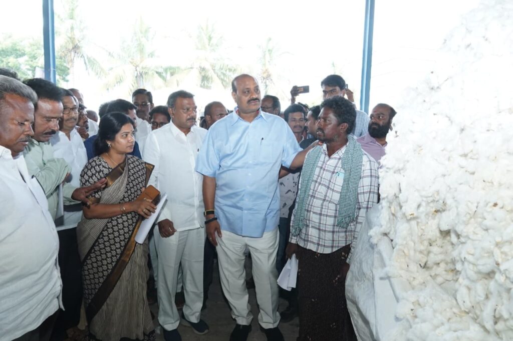 రాష్ట్రంలోని పత్తి రైతులు ఎలాంటి ఆందోళన చెందాల్సిన అవసరం లేదని, ప్రతి కిలో పత్తి కొనుగోలు అయ్యేలా ప్రభుత్వం పూర్తి హామీ ఇస్తుందని వ్యవసాయ శాఖ మంత్రి కింజరాపు అచ్చెన్నాయుడు వెల్లడించారు. పేరేచెర్ల, సత్తెనపల్లి సీసీఐ కొనుగోలు కేంద్రాలను మంత్రి స్వయంగా సందర్శించి, రైతుల సమస్యలను తెలుసుకున్నారు. తేమ శాతం, యాప్ సమస్యలు, L1–L4 గ్రేడింగ్ పై వివరాలు సేకరించారు.
