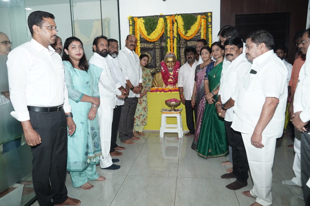 దివంగత నేత, మాజీ కేంద్ర మంత్రి కింజరాపు ఎర్రన్నాయుడు జయంతి వేడుకలు సోమవారం ఘనంగా జరిగాయి. విజయవాడలోని తన క్యాంప్ కార్యాలయంలో ఎర్రన్నాయుడు విగ్రహానికి రాష్ట్ర వ్యవసాయ శాఖ మంత్రి కింజరాపు అచ్చెన్నాయుడు, శ్రీకాకుళం జిల్లా ఎమ్మెల్యేలతో కలిసి నివాళులర్పించారు.
