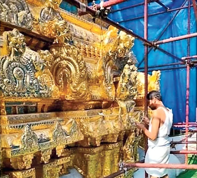 తిరుపతిలోని ప్రసిద్ధ శ్రీగోవిందరాజస్వామి వారి విమాన గోపురం బంగారు తాపడ పనుల్లో ఏకంగా 50 కిలోల బంగారం మాయమైందనే ఆరోపణలు టీటీడీలో కలకలం రేపుతున్నాయి. బంగారం మాయంపై విజిలెన్స్ విభాగం ఇప్పటికే లోతైన విచారణ ప్రారంభించింది. రికార్డుల్లో ఉన్న బంగారానికి, గోపురానికి వాడిన బంగారానికి పొంతన లేనట్లు గుర్తించారు. గోపురం పనుల సమయంలో నిబంధనలకు విరుద్ధంగా వ్యవహరించడం వల్ల సుమారు 30 విగ్రహాలు ధ్వంసమయ్యాయని తెలుస్తోంది. ఇది భక్తుల మనోభావాలను తీవ్రంగా గాయపరిచింది.