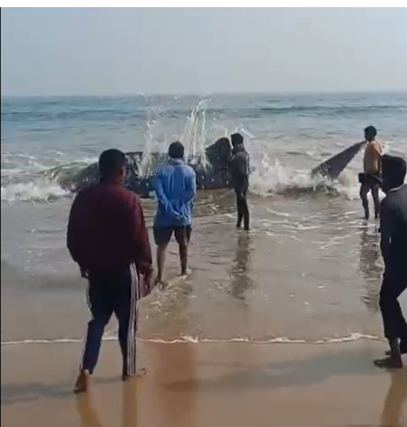 AP VIZAG యారాడ తీరంలో విషాదం: వలలో తిమింగలం మృతి