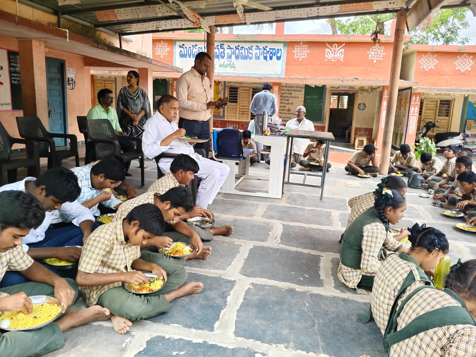 విద్యార్థులకు వడ్డించేందుకు సిద్ధం చేసిన పులిహోర, చెట్నీ, ఉడికించిన కోడిగుడ్డు వంటి ఆహార పదార్థాల నాణ్యతను ఎమ్మెల్యే స్వయంగా తనిఖీ చేశారు. మెనూ అమలు విధానంపై కూడా ఆయన సమీక్షించారు.ఈ సందర్భంగా విద్యార్థులతో మాట్లాడిన ఎమ్మెల్యే, ఆహారం నాణ్యతపై వారి అభిప్రాయాన్ని తెలుసుకున్నారు. విద్యార్థులు భోజనం బాగుందని తెలిపినట్లు సమాచారం. అనంతరం ఆయన స్వయంగా విద్యార్థులకు భోజనం వడ్డించి, వారితో కలిసి భోజనం చేసి ఆహార నాణ్యతను పరిశీలించారు.ఈ సందర్భంగా ఆయన మాట్లాడుతూ, నిరతాన్నధాత్రిగా పేరుపొందిన డొక్కా సీతమ్మ పేరుతో అమలు చేస్తున్న ఈ పథకం ద్వారా ప్రభుత్వ పాఠశాలల్లోని విద్యార్థులకు సన్న బియ్యంతో నాణ్యమైన, రుచికరమైన ఆహారం అందుతున్నట్లు తెలిపారు. మెనూను ఖచ్చితంగా అమలు చేయడం ద్వారా విద్యార్థులకు పోషకాహారం అందిస్తున్నామని అన్నారు.