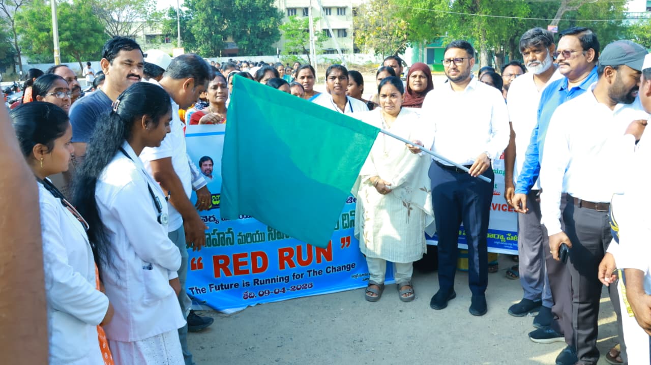 ఎయిడ్స్ వ్యాధి నిర్మూలనకు ప్రజలలో విస్తృత అవగాహన కల్పించాలని సూర్యాపేట జిల్లా కలెక్టర్ తేజస్ నంద్ లాల్ పవార్ అన్నారు. ప్రజా పాలన- ప్రగతి ప్రణాళిక కార్యక్రమంలో భాగంగా జిల్లా వైద్య ఆరోగ్యశాఖ ఆధ్వర్యంలో ఆరోగ్య వారం కార్యక్రమంలో భాగంగ 4వ రోజు AIDS awareness prevention campaign day, రెడ్ రన్ ను జిల్లా కలెక్టర్ తేజస్ నంద్ లాల్ పవార్ ప్రభుత్వ జూనియర్ కళాశాల, సూర్యాపేట వద్ద జెండా ఊపి ప్రారంభించి, స్థానిక ప్రభుత్వ నర్సింగ్ కళాశాల, సూర్యాపేట వరకు అనుసరించారు. ర్యాలీ సందర్భంగా “ఎయిడ్స్పై అవగాహన – జీవన రక్షణ”, “సురక్షిత జీవితం – ఆరోగ్య భవిష్యత్తు” వంటి నినాదాలతో ప్రజలకు సందేశాలు అందించారు. బ్యానర్లు, పాంప్లెట్ల ద్వారా వ్యాధి నివారణ మార్గాలపై అవగాహన కల్పించారు.తదుపరి కలెక్టర్ మాట్లాడుతూ .. HIV/AIDS పై సరైన అవగాహన కల్పించి వ్యాధి వ్యాప్తి విధానాలైన రక్త మార్పిడి, సూదులు/సిరంజీలు, తల్లి నుండి పిల్లకు సోకకుండా గర్భిణీ స్త్రీలు తప్పనిసరిగా HIV పరీక్షలు చేసుకోవాలని సమాజానికి తెలియజేయడం, ఈ విషయాల గురించి జిల్లా వైద్య ఆరోగ్య శాఖ అధికారులు, ప్రభుత్వ మరియు ప్రైవేటు వైద్యులు, నర్సింగ్ ఆఫీసర్లు, పారా మెడికల్ సిబ్బంది, ఆశా కార్యకర్తలు, ప్రజా ప్రతినిధులు, ప్రింట్ మరియు ఎలక్ట్రానిక్ మీడియా మిత్రులు విస్తృతముగా అవగాహన కల్పించి వ్యాధి వ్యాప్తి నివారించవలెనని కలెక్టర్ సూచించారు…
