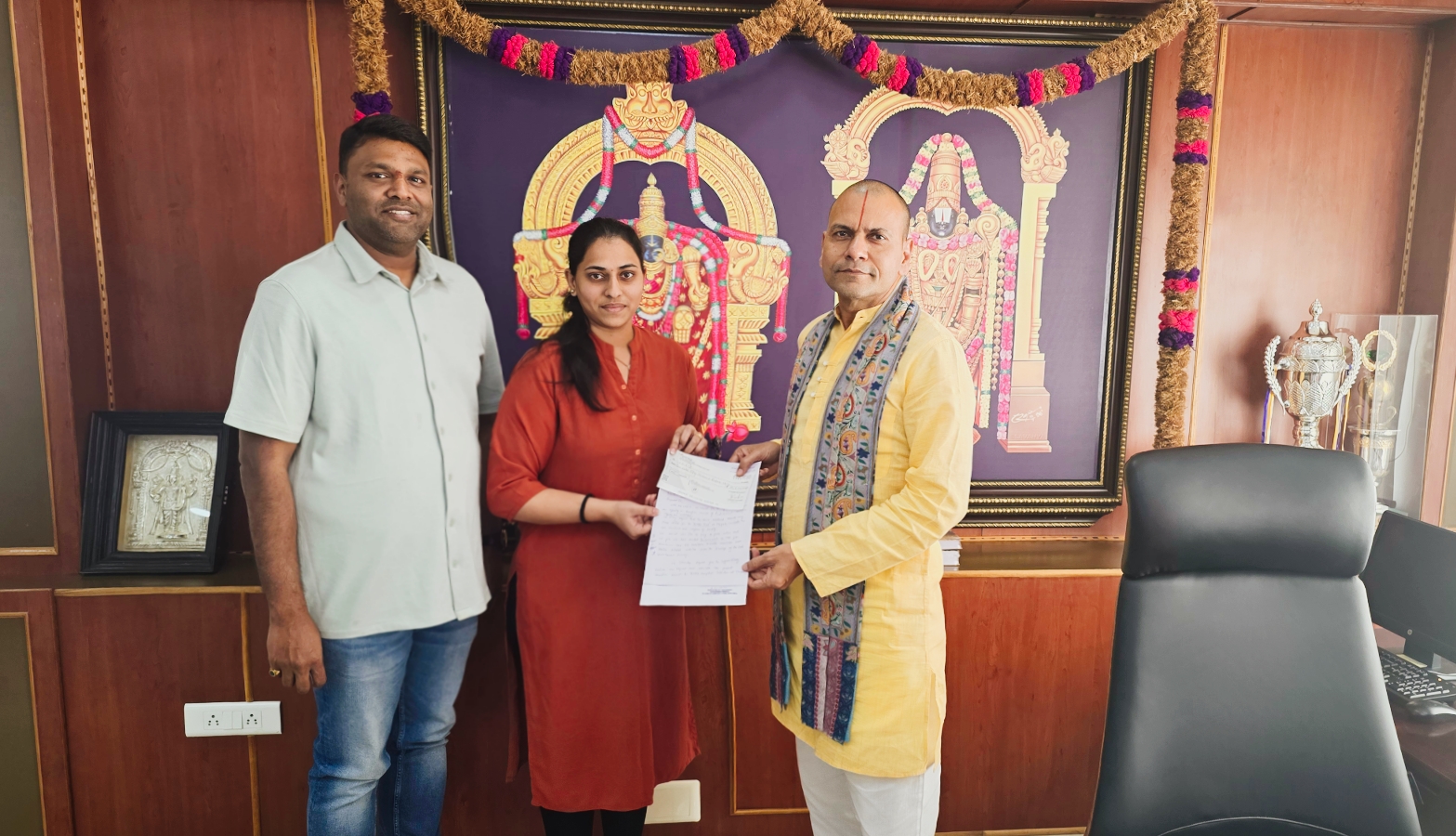 బ్రహ్మ ఋషి హోమ్స్ డైరెక్టర్ సాహితి యార్లగడ్డ, TTD E.O అనిల్ కుమార్ సింఘాల్ను కలిసి రూ. 2.5 లక్షల చెక్కును అందజేశారు. బర్డ్ ఆసుపత్రిలో ఉచితంగా నిర్వహిస్తున్న ఆర్థోపెడిక్ ఆపరేషన్లు, పునరావాస కార్యక్రమాల కోసం ఈ మొత్తాన్ని వినియోగించనున్నారు.సమాజానికి తిరిగి ఇవ్వడం తమ సంస్థ ప్రధాన ఉద్దేశమని, వికలాంగులకు చలనం మరియు గౌరవాన్ని అందించే బర్డ్ వంటి సంస్థలకు మద్దతు ఇవ్వడం తమ బాధ్యత అని సాహితి యార్లగడ్డ పేర్కొన్నారు. ఈ విరాళాన్ని అభినందిస్తూ బర్డ్ ఆసుపత్రి డైరెక్టర్ డాక్టర్ గూడూరు జగదీష్ కృతజ్ఞతలు తెలిపారు. దాతల సహకారం వల్ల వేలాది మంది పేద రోగులకు ఉచిత సేవలు మరింత మెరుగ్గా అందుతాయని ఆయన అన్నారు.