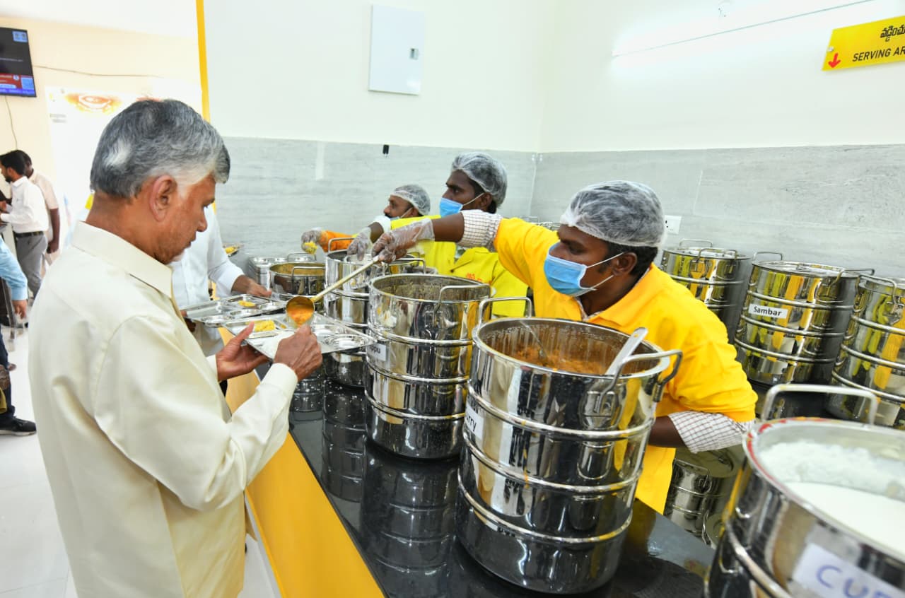 కార్మికులతో కలిసి రూ.5 టోకెన్ కొనుగోలు చేసి భోజనం చేసిన సీఎం, పేదలకు స్వయంగా ఆహారం వడ్డించారు. రాష్ట్రవ్యాప్తంగా గ్రామీణ ప్రాంతాల్లో 62 కొత్త అన్న క్యాంటీన్లు ప్రారంభించడంతో మొత్తం సంఖ్య 269కి చేరిందని తెలిపారు.పట్టణాల్లో 204, గ్రామాల్లో 65 క్యాంటీన్లు ప్రస్తుతం సేవలు అందిస్తున్నాయని, త్వరలో మరికొన్ని ప్రారంభిస్తామని వెల్లడించారు. రోజుకు సుమారు 2.10 లక్షల మంది ఈ క్యాంటీన్ల ద్వారా భోజనం పొందుతున్నారని చెప్పారు.అక్షయపాత్ర ఫౌండేషన్ అందిస్తున్న సేవలను అభినందించిన సీఎం, తక్కువ ధరలో నాణ్యమైన ఆహారం అందించడం ద్వారా పేదలకు ఉపశమనం కలుగుతుందని పేర్కొన్నారు.