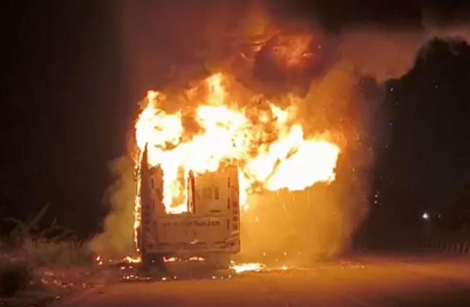 బస్సు వెనుక భాగం నుంచి పొగలు రావడం గమనించిన డ్రైవర్ వెంటనే వాహనాన్ని ఆపాడు. ఆ సమయంలో బస్సులో 29 మంది ప్రయాణికులు ఉండగా, వారు అద్దాలు పగులగొట్టి బయటకు దూకి ప్రాణాలు రక్షించుకున్నారు.