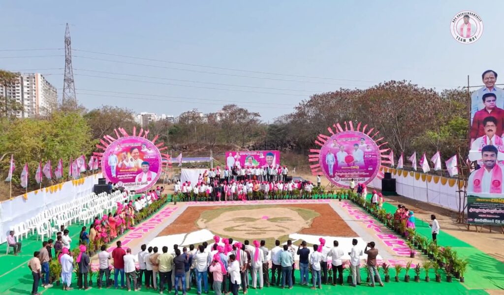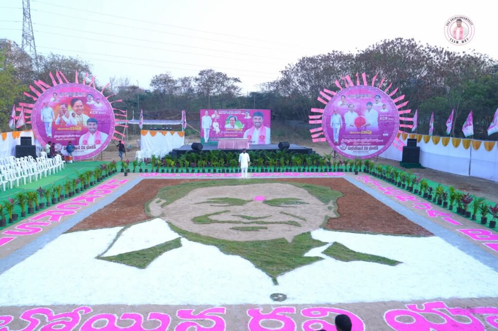 తెలంగాణ తొలి ముఖ్యమంత్రి, బీఆర్ఎస్ అధినేత కల్వకుంట్ల చంద్రశేఖర రావు (కేసీఆర్) 72వ జన్మదిన వేడుకలు శేరిలింగంపల్లి నియోజకవర్గంలో మిన్నంటాయి. రాష్ట్ర నాయకుడు మారబోయిన రవి యాదవ్ ఆధ్వర్యంలో మస్జిద్ బండ కట్ట మైసమ్మ వద్ద 72 అడుగుల కేసీఆర్ భారీ చిత్రాన్ని పచ్చికపై అద్భుతంగా ఆవిష్కరించారు.