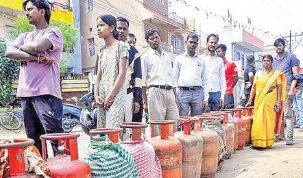 దేశంలో గ్యాస్ కొరతపై భయాందోళనలు పెరుగుతున్నాయి. కొన్ని ప్రాంతాల్లో ఎల్పీజీ సిలిండర్లు అందుబాటులో లేక ప్రజలు బారులు తీరుతున్నట్లు సమాచారం.