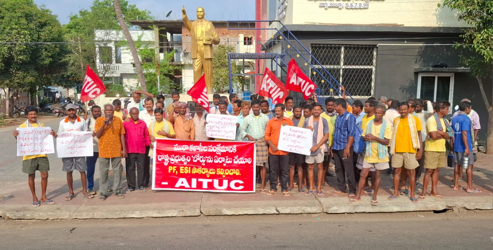 నల్లగొండ జిల్లా కేంద్రంలో కేంద్ర ప్రభుత్వం అమల్లోకి తీసుకువచ్చిన కొత్త లేబర్ చట్టాలకు వ్యతిరేకంగా కార్మిక సంఘాలు భారీ నిరసన చేపట్టాయి. కార్మిక సంఘాల పిలుపు మేరకు వివిధ సంస్థలలో పనిచేస్తున్న కార్మికులు తమ విధులు బహిష్కరించి ర్యాలీ నిర్వహించారు.