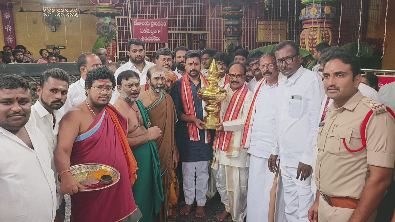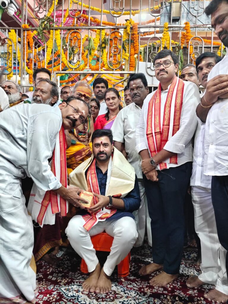 నారా రోహిత్కు ఎమ్మెల్యే మండలి బుద్ధప్రసాద్ తనయుడు మండలి వెంకట్రామ్, బీజేపీ రాష్ట్ర నేత బుచ్చిరాజు మరియు ఆలయ అధికారులు పూర్ణకుంభంతో స్వాగతం పలికారు. ముందుగా స్వామివారి నాగపుట్టలో పాలు పోసి మొక్కులు తీర్చుకున్న రోహిత్, అనంతరం గర్భాలయంలో ప్రత్యేక పూజలు నిర్వహించారు.ప్రముఖ నిర్మాత అట్లూరి నారాయణరావు సుమారు రూ.కోటి వ్యయంతో బహుకరించిన నూతన టేకు రథాన్ని నారా రోహిత్ ప్రారంభించారు. రథ శిఖరానికి శాస్త్రోక్తంగా అభిషేకాలు నిర్వహించి, శిఖర ప్రతిష్ట చేశారు.ఆలయ డిప్యూటీ కమిషనర్ శ్రీరామ వరప్రసాదరావు, వేద పండితులు రోహిత్ను దుశ్శాలువాతో సత్కరించి స్వామివారి తీర్థప్రసాదాలు అందజేశారు.ఈ కార్యక్రమంలో కూటమి నాయకులు, భారీ సంఖ్యలో అభిమానులు పాల్గొన్నారు.