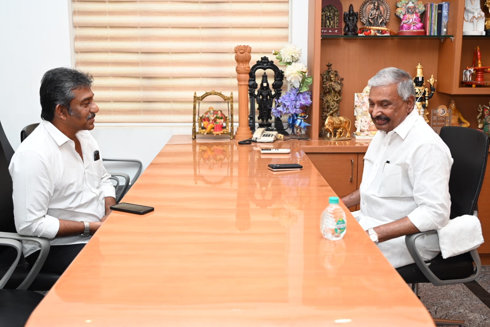 ఉమ్మడి నెల్లూరు జిల్లా వెంకటగిరి(BNS):-మాజీ మంత్రివర్యులు పెద్దిరెడ్డి రామచంద్రారెడ్డిని వెంకటగిరి నియోజకవర్గ వైఎస్ఆర్సిపి సమన్వయకర్త శ్రీనేదురుమల్లి రామ్ కుమార్ రెడ్డి బుధవారం మర్యాదపూర్వకంగా కలిశారు.ఈ సందర్భంగా ప్రస్తుత రాజకీయ పరిస్థితులు, క్షేత్రస్థాయిలో YSRCP పటిష్టతకు వెంకటగిరి నియోజకవర్గంలో చేపడుతున్న కార్యక్రమాలు వంటి పలు కీలక అంశాలపై చర్చించారు