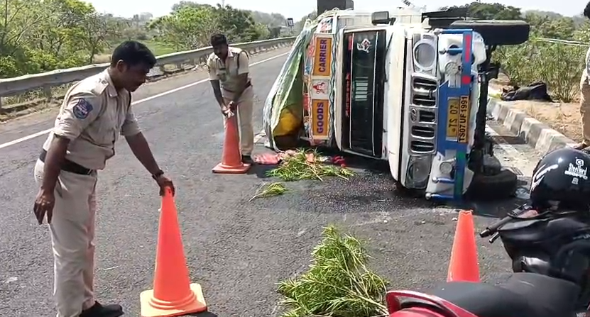 Nirmal జిల్లాలోని Kondapur గ్రామ శివారులో National Highway 44పై ఘోర రోడ్డు ప్రమాదం జరిగింది. పెళ్లి బృందంతో వెళ్తున్న ఐచర్ వ్యాను టైరు పేలి అదుపుతప్పి పల్టీలు కొట్టింది.