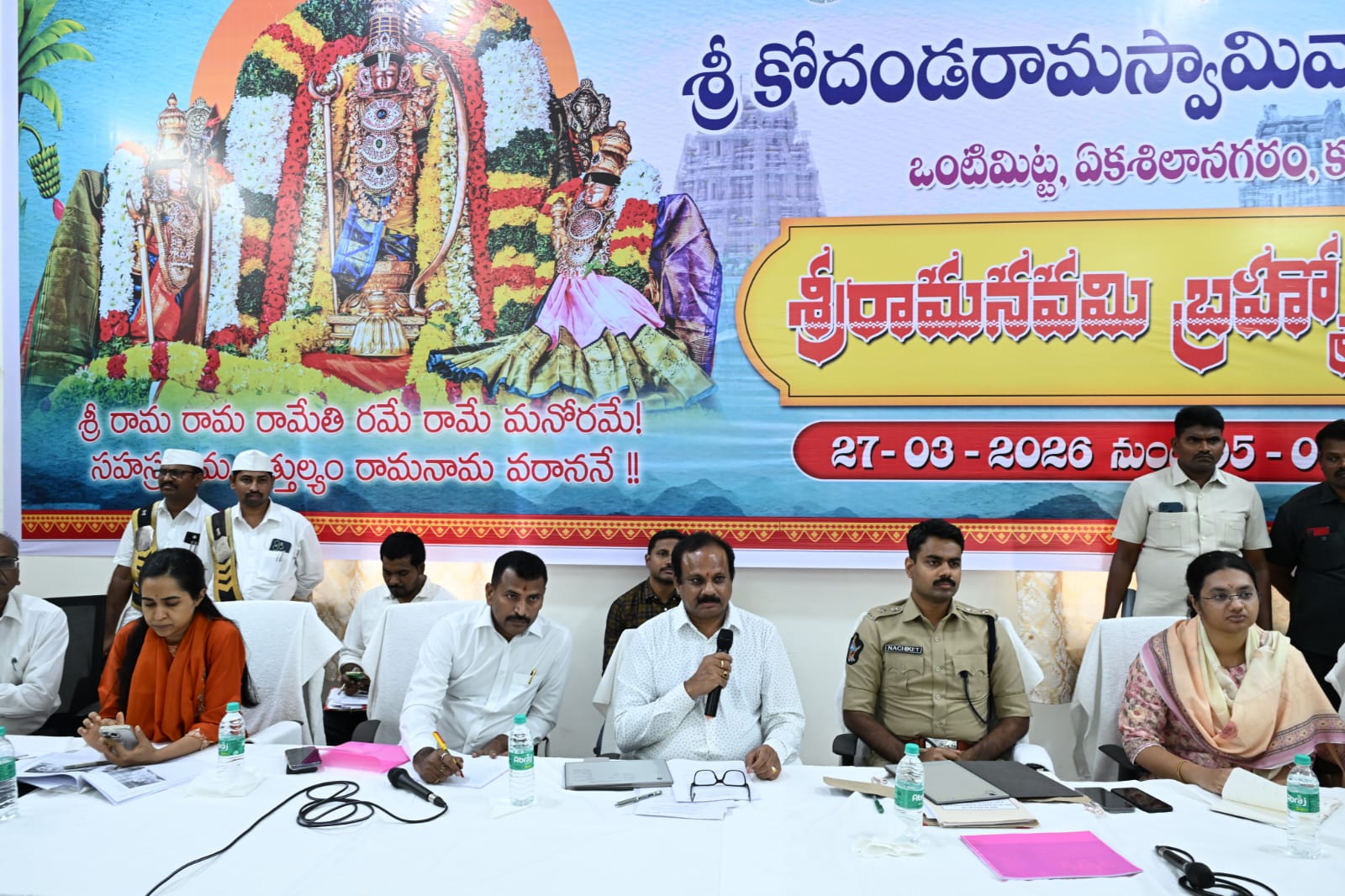 కడప జిల్లా ఒంటిమిట్టలో నిర్వహించనున్న శ్రీ కోదండరామస్వామి బ్రహ్మోత్సవాలు మరియు ఏప్రిల్ 1న జరిగే రాములవారి కల్యాణోత్సవం ఏర్పాట్లపై జిల్లా కలెక్టర్ డాక్టర్ శ్రీధర్ చెరుకూరి సమీక్ష నిర్వహించారు. గురువారం సాయంత్రం ఒంటిమిట్ట టిటిడి అతిథి గృహంలో టిటిడి జేఈఓ వీరబ్రహ్మం, ఎస్పీ షెల్కే నచికేత్ విశ్వనాథ్ తదితరులతో కలిసి సమావేశమయ్యారు.
