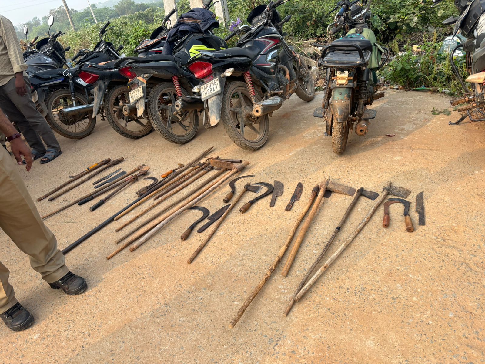 అదే విధంగా 16 గొడ్డళ్లు, 14 కత్తులు పాటు 200 లీటర్ల బెల్లం ఊటను ధ్వంసం చేశారు. ఇద్దరు పాత నేరస్తులను అదుపులోకి తీసుకున్నట్లు సీఐ వివరించారు.