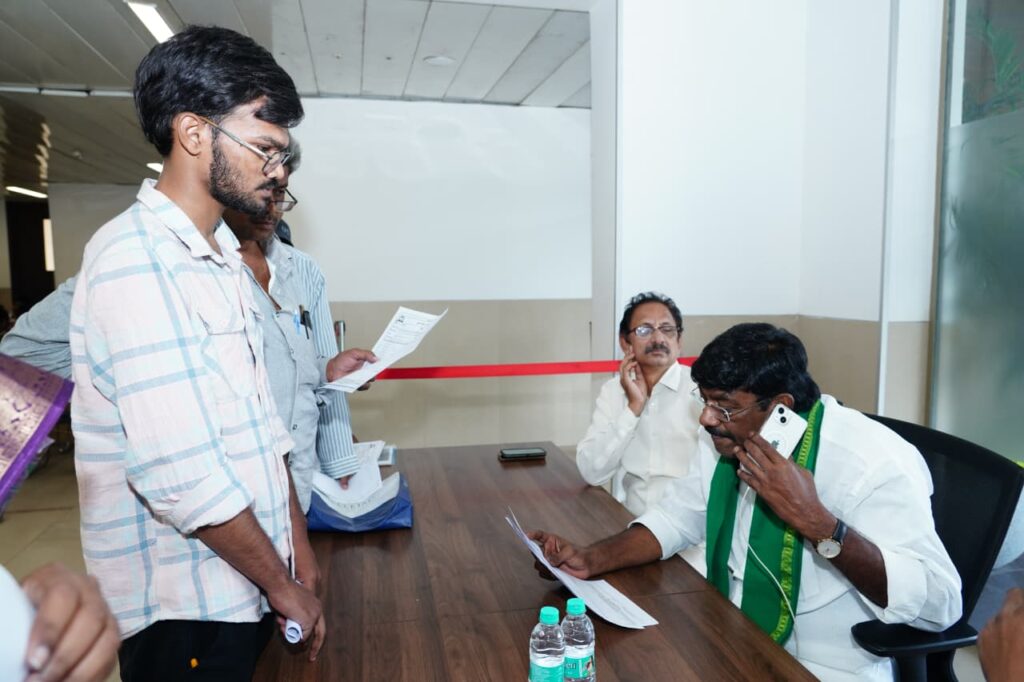Amaravatiలోని టీడీపీ కేంద్ర కార్యాలయంలో నిర్వహించిన ప్రజావినతుల స్వీకరణ కార్యక్రమంలో పలువురు తమ సమస్యలను వెల్లడించారు. ఈ సందర్భంగా Mareddy Srinivas Reddy అర్జీలు స్వీకరించి సమస్యల పరిష్కారానికి కృషి చేస్తామని హామీ ఇచ్చారు.