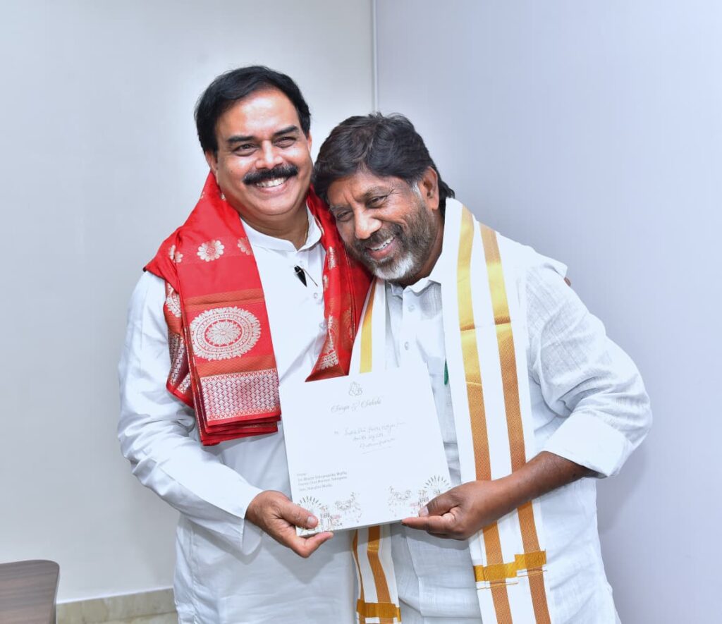 మార్చి 5వ తేదీన హైదరాబాద్లో జరగనున్న తన కుమారుడి వివాహానికి హాజరై నూతన వధూవరులను ఆశీర్వదించాలని సీఎం చంద్రబాబును కోరారు. ఈ సందర్భంగా భట్టి విక్రమార్కతో పాటు తెలంగాణ మంత్రి దుద్దిళ్ల శ్రీధర్ బాబు కూడా ఉన్నారు. అనంతరం ఏపీ అసెంబ్లీ ప్రాంగణంలో పలువురు ఏపీ మంత్రులను భట్టి విక్రమార్క కలిశారు. ఏపీ పౌరసరఫరాల శాఖ మంత్రి నాదెండ్ల మనోహర్ బయటకు వచ్చి భట్టి విక్రమార్క నుంచి వివాహ పత్రికను అందుకున్నారు. ఈ సందర్భంగా నాదెండ్ల మనోహర్ను భట్టి విక్రమార్క ఆప్యాయంగా పలకరించి, వివాహానికి తప్పనిసరిగా రావాలని కోరారు.కుటుంబ వేడుక ద్వారా ఇరు రాష్ట్రాల ముఖ్య నేతల మధ్య ఈ భేటీ రాజకీయ వర్గాల్లోనూ ఆసక్తికరంగా మారింది.