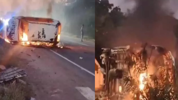 నల్గొండ జిల్లా చిట్యాల మండలం గుండ్రాంపల్లి సమీపంలో, హైదరాబాద్–విజయవాడ రహదారి (NH-65)పై ఇన్నోవా కారు యూ-టర్న్ వద్ద అదుపు తప్పి డివైడర్ను ఢీకొట్టి మంటలు చెలరేగింది.