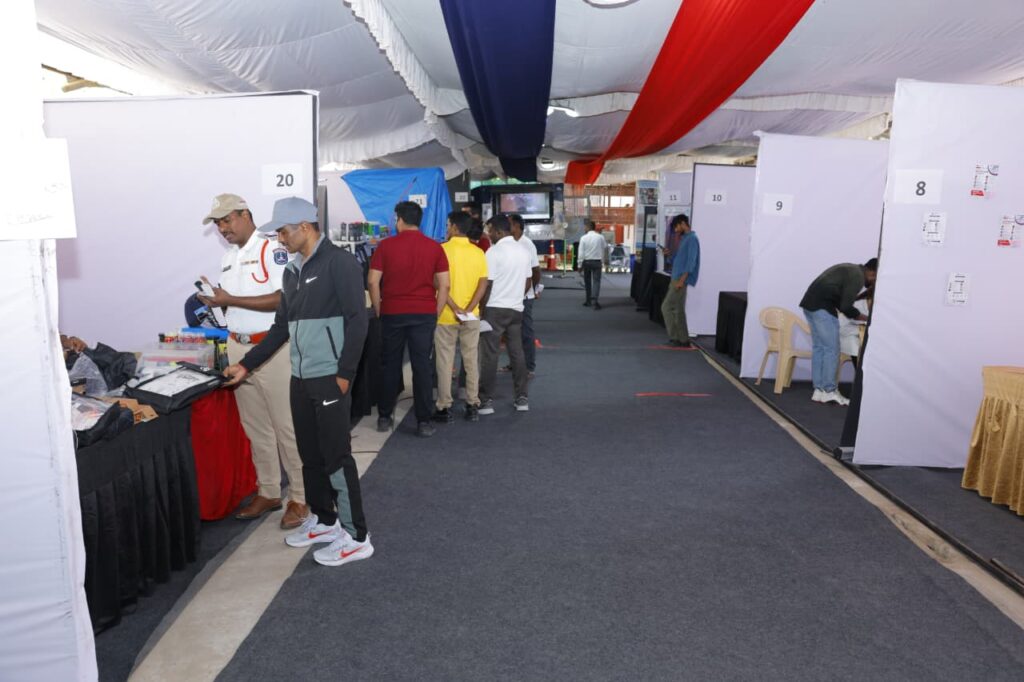 తెలంగాణ రాష్ట్ర పోలీస్ క్రీడోత్సవాల సందర్భంగా సైబరాబాద్ పోలీస్ కమిషనరేట్లో ఏర్పాటు చేసిన ‘పోలీస్ వెల్ఫేర్ & వెల్నెస్ ఎక్స్పో’ సందర్శకులతో కిక్కిరిసిపోతోంది. పోలీస్ సిబ్బంది మరియు వారి కుటుంబ సభ్యుల సంక్షేమమే లక్ష్యంగా నిర్వహిస్తున్న ఈ ప్రదర్శనలో ఆధునిక పోలీసింగ్ పరికరాలు ప్రత్యేక ఆకర్షణగా నిలుస్తున్నాయి.