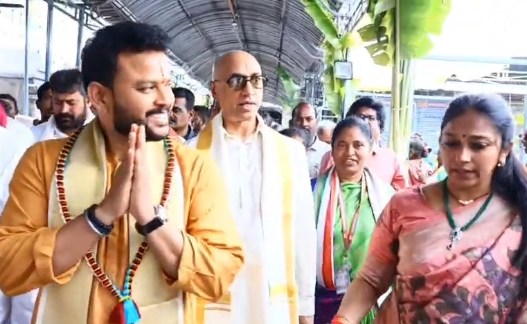ఆలయానికి చేరుకున్న మంత్రికి ఈవో బాపిరెడ్డి దర్శన ఏర్పాట్లు చేశారు. స్థానిక ఎమ్మెల్యే బొజ్జల సుధీర్ రెడ్డి సతీమణి రిషితా రెడ్డి మరియు పాలకమండలి సభ్యులు వారికి ఘనస్వాగతం పలికారు. దర్శనం అనంతరం గురుదక్షిణామూర్తి సన్నిధిలో వేద పండితులు మంత్రికి వేదాశీర్వచనం పలికారు. స్వామివారి తీర్థప్రసాదాలు, చిత్రపటాన్ని అందజేశారు. కేంద్ర మంత్రిగా బాధ్యతలు చేపట్టిన తర్వాత క్షేత్ర సందర్శనకు రావడం పట్ల స్థానిక నేతలు సంతోషం వ్యక్తం చేశారు