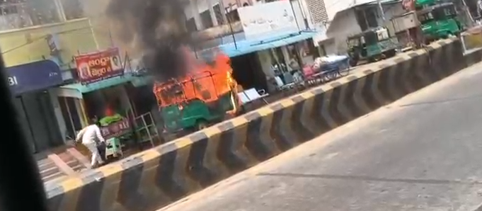 వన్టౌన్ చేపల మార్కెట్ సమీపంలో ఒక ఆటోకు అకస్మాత్తుగా మంటలు అంటుకుని కాలిపోయిన ఘటన కలకలం రేపింది.