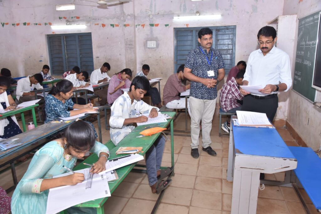పదో తరగతి పరీక్షలు సజావుగా జరుగుతున్నాయా అని తెలుసుకోవడానికి జిల్లా కలెక్టర్ S. Ramsundar Reddy పట్టణంలోని పరీక్షా కేంద్రాలను తనిఖీ చేశారు.