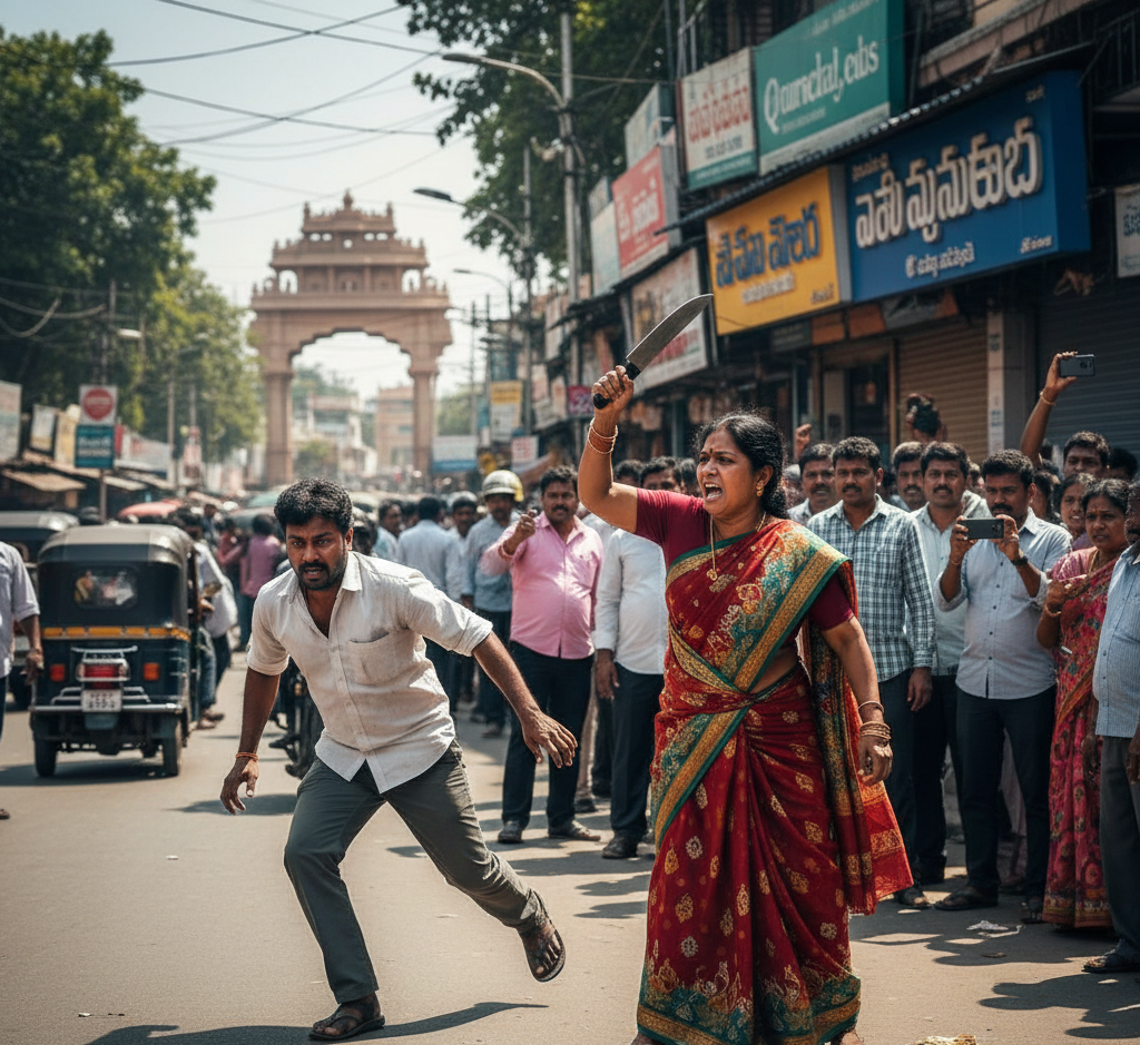 నగరంలోని ప్రధాన కూడలి వరంగల్ చౌరస్తాలో బుధవారం మధ్యాహ్నం ఓ మహిళ కత్తితో హల్చల్ చేయడం తీవ్ర కలకలం రేపింది. తన ఆస్తులను ఆక్రమించడమే కాకుండా, వివాహేతర సంబంధం పెట్టుకుని భర్త వేధిస్తున్నాడంటూ ఆమె నడిరోడ్డుపై ఆవేదన వ్యక్తం చేశారు.